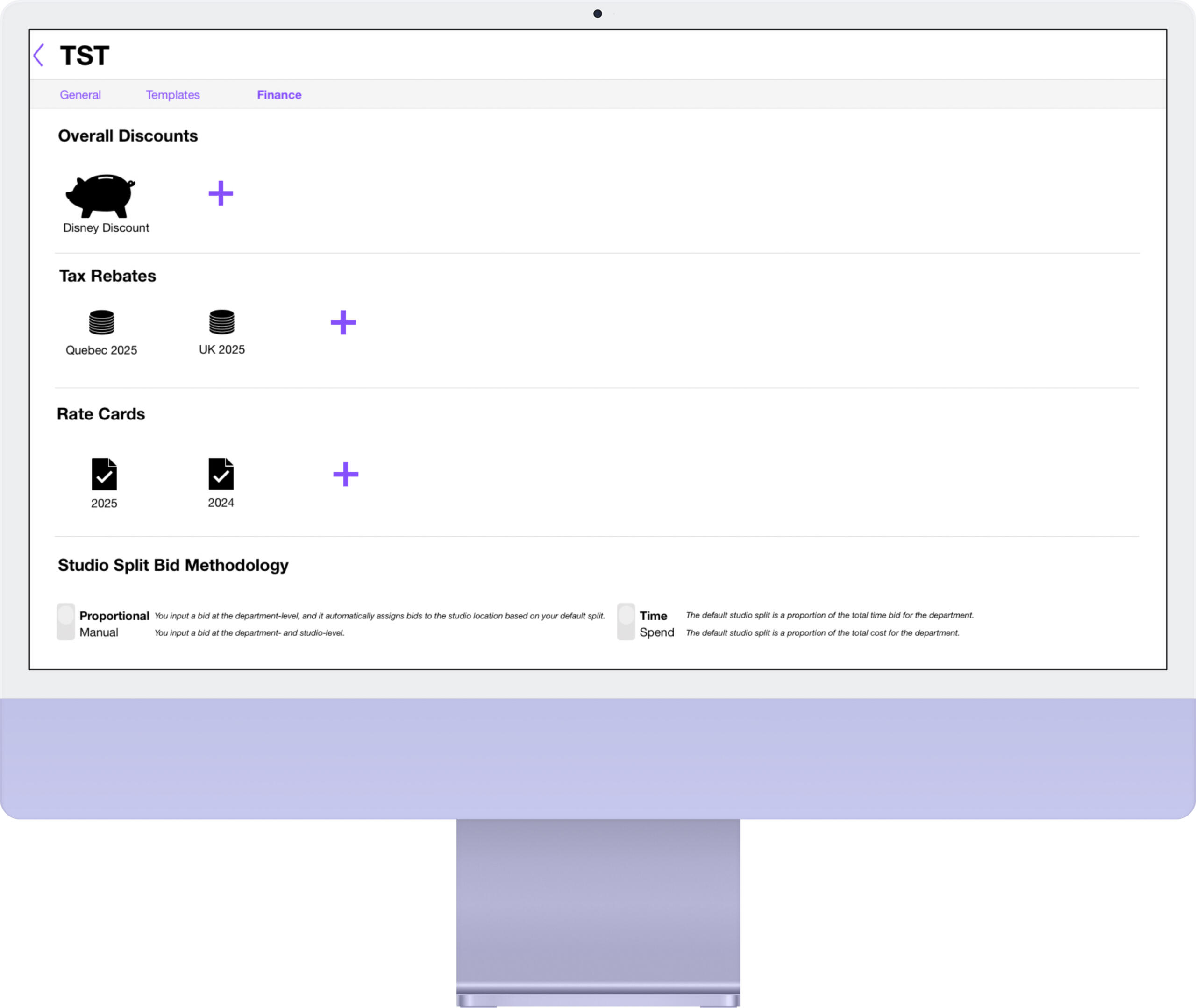Apply studio rate cards, volume discounts, and tax rebates while giving producers the flexibility they need to win.