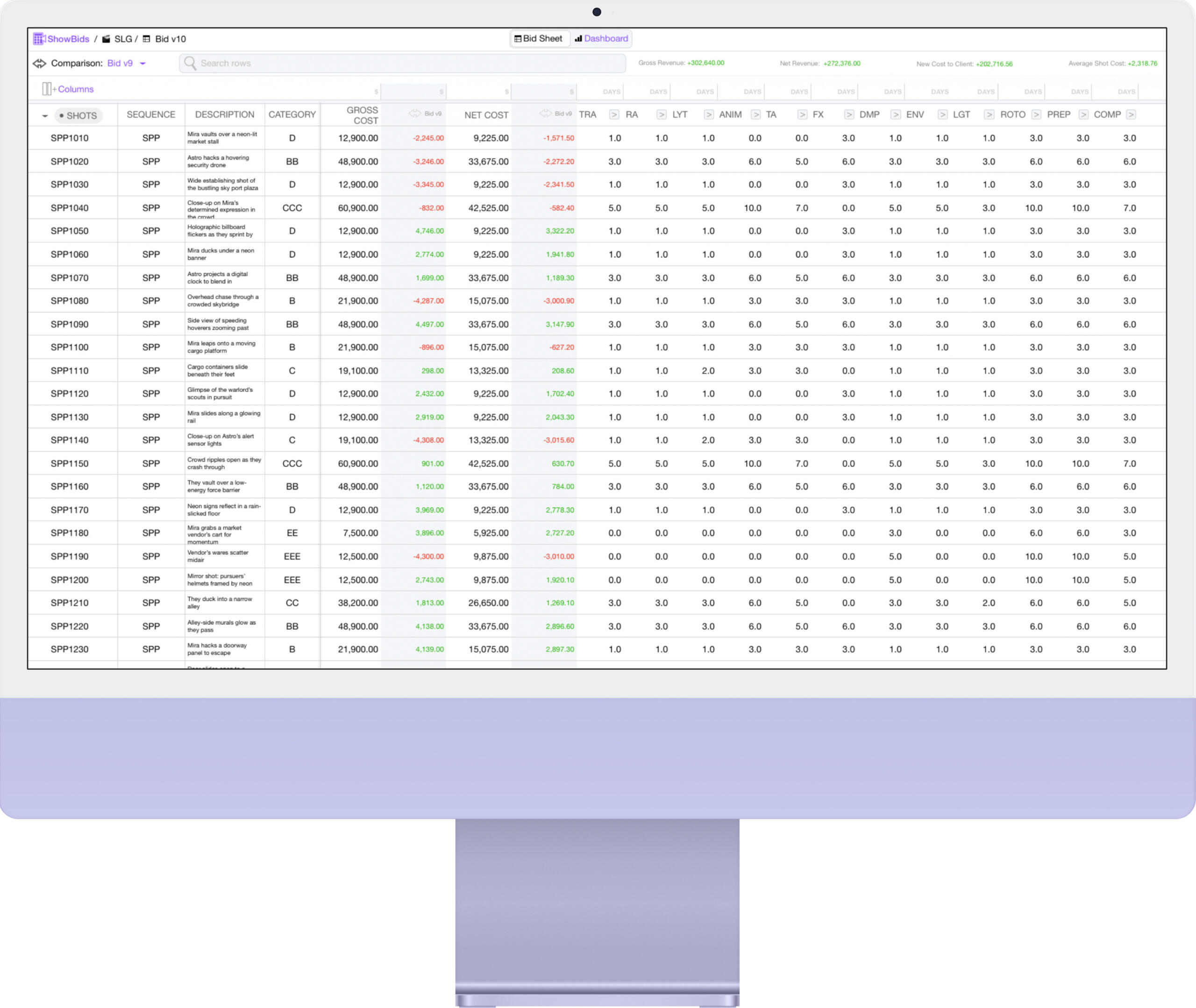 Every copied file and broken formula risks delays, miscommunication, and lost revenue. Leave those clunky spreadsheets behind. ShowBids makes professional VFX bidding faster, cleaner, and smarter — without changing the way you work.